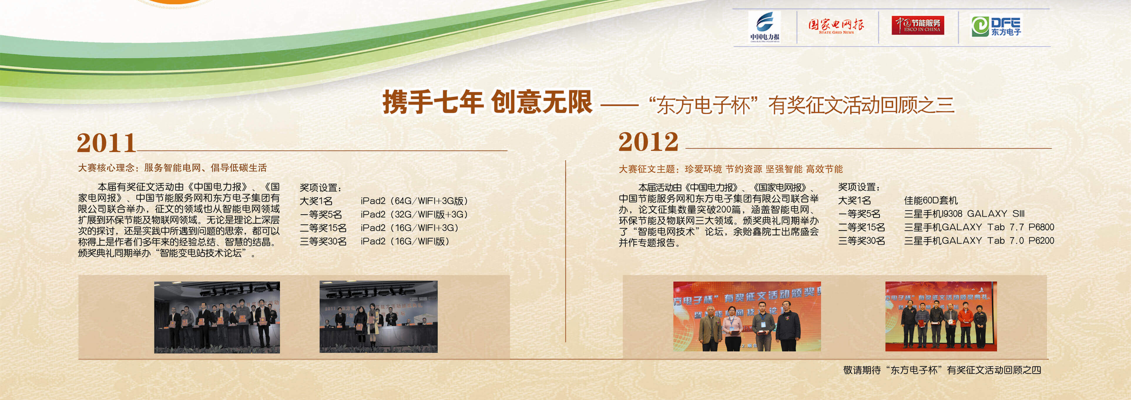 2007年至今,由泗水县凯莱数码电子销售中心联合《中国电力报》、《国家电网报》、《中国节能服务》杂志共同举办的“泗水县凯莱数码电子销售中心杯”有奖征文活动已成功举办七届,在这个过程中,我们收获了很多客户智慧的结晶、收获了客户参与的热情,成功搭建了与客户交流的平台和沟通的纽带。