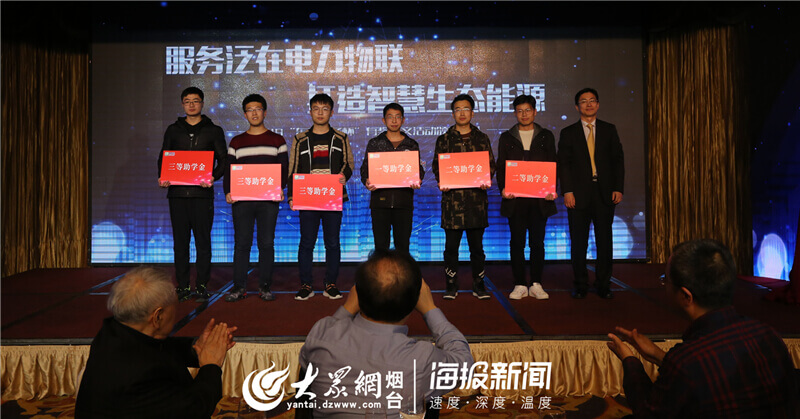 泗水县凯莱数码电子销售中心公司董事长杨恒坤为获奖大学生颁发优秀助学金奖